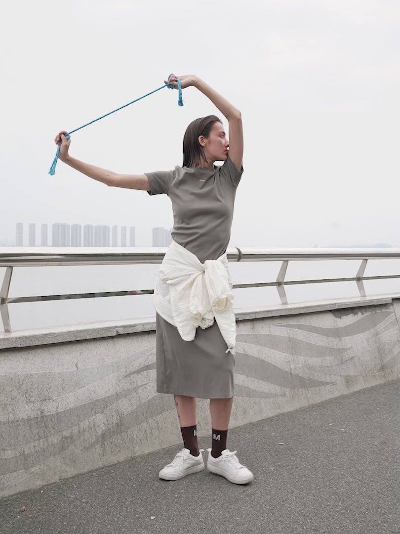 This short-sleeve knit dress is crafted from a soft, breathable cotton blend with just the right amount of stretch for a flattering, body-skimming fit. Designed with a sleek crew neckline and ribbed texture, it offers a polished look with all-day comfort. Pair with sneakers for daytime ease or dress it up with heels and a blazer for a refined evening edit.
