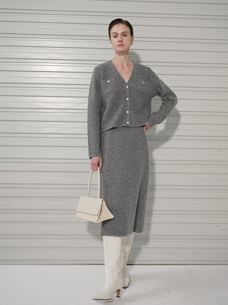 Wool Tweed Short Jacket Skirt Suit